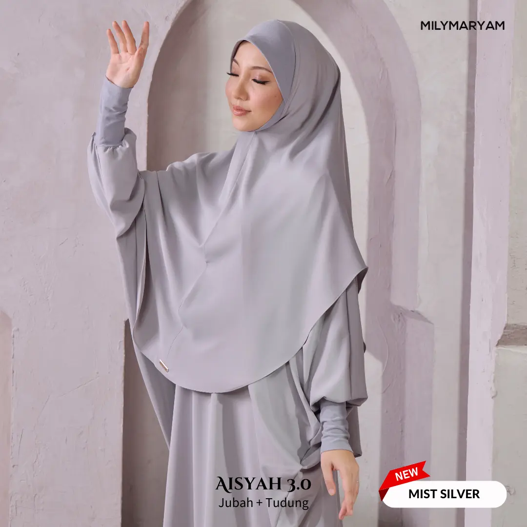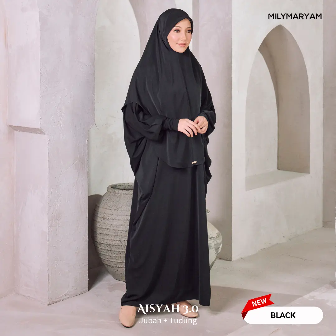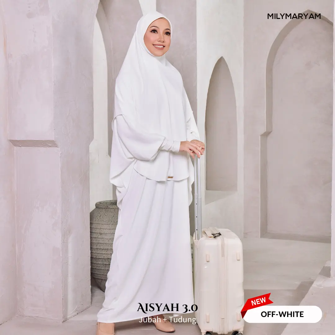 Selepas sambutan hangat Aisyah 1.0 & 2.0, kini hadir Aisyah 3.0 dengan material yang lebih premium, selesa dan tahan lama. Direka khusus untuk wanita Muslimah yang mementingkan kesopanan, keselesaan dan kemudahan beribadah, Aisyah 3.0 ialah pilihan tepat untuk setiap majlis dan perjalanan ibadah.