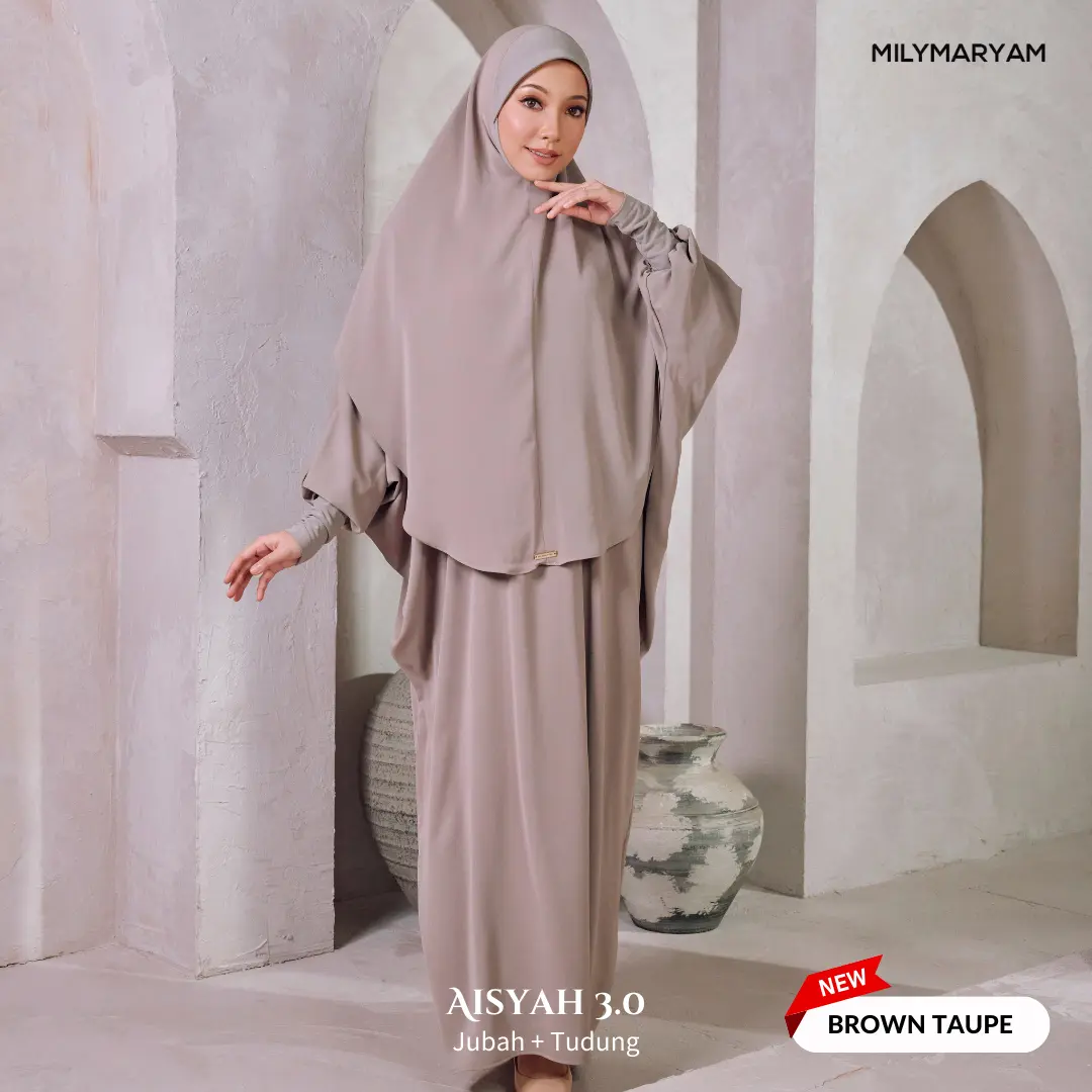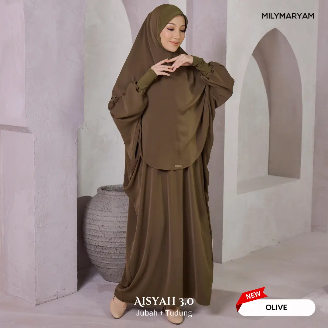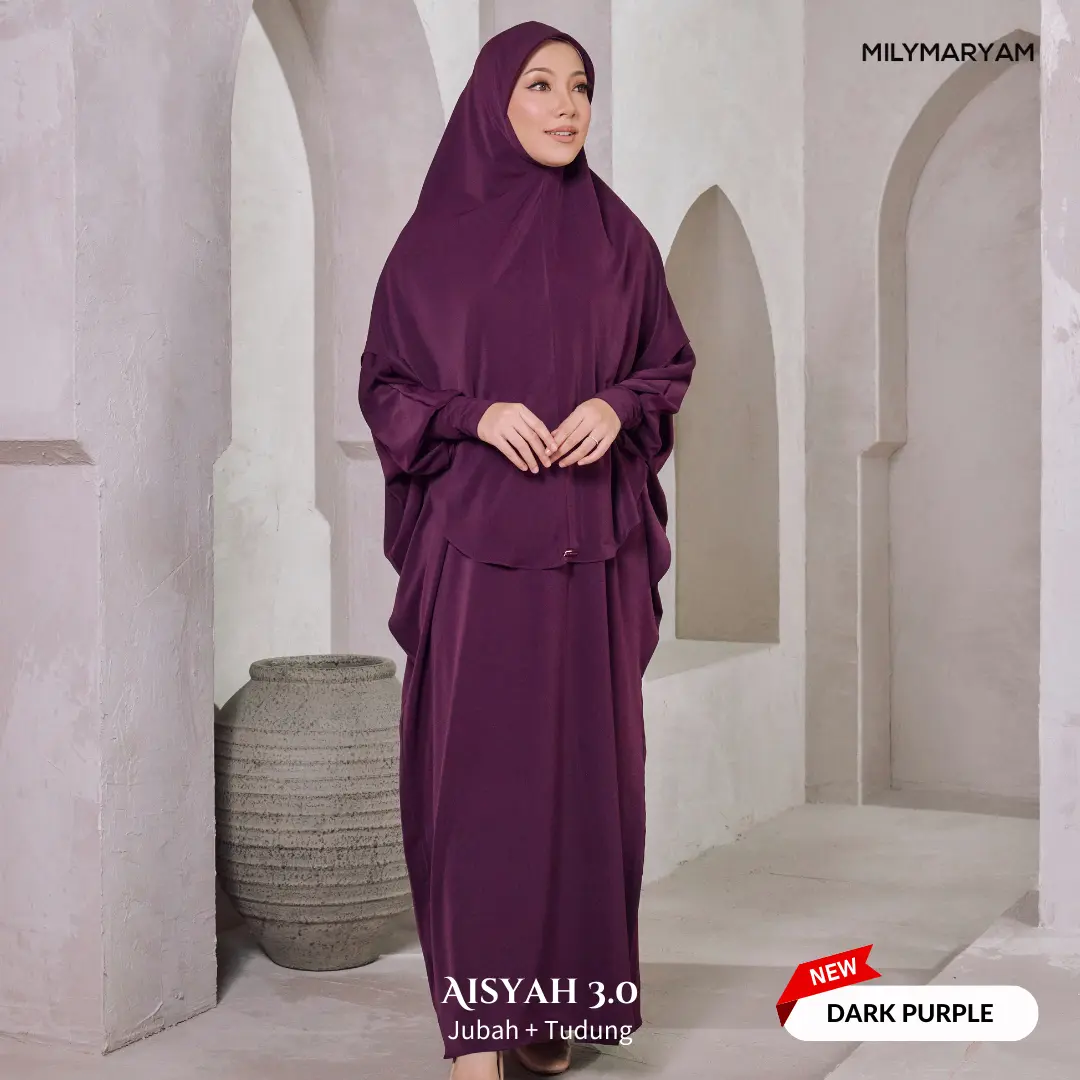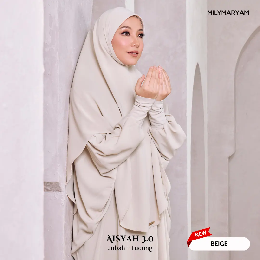 Selepas sambutan hangat Aisyah 1.0 & 2.0, kini hadir Aisyah 3.0 dengan material yang lebih premium, selesa dan tahan lama. Direka khusus untuk wanita Muslimah yang mementingkan kesopanan, keselesaan dan kemudahan beribadah, Aisyah 3.0 ialah pilihan tepat untuk setiap majlis dan perjalanan ibadah.
