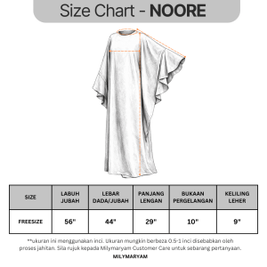 NOORE comes in Freesize, designed with a kaftan cut to suit various body shapes comfortably.
